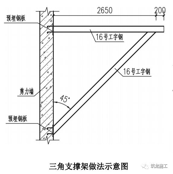 2. 搭设抛撑时,抛撑采用通长杆并采用旋转扣件固定在脚手架上,与地面的倾斜度为45°~60°。