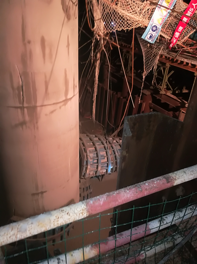 当第16车罐车的混凝土泵送完后,由李某贵和杨某俊两人完成了振捣,此时杨某俊与田某海及王志某一起在模板顶部外侧的作业平台上准备休息一会儿,李某贵因口渴从安全爬梯下去栈桥平台上喝水,当李某贵下至离模板顶部约有3m高(即20.5m墩身高)时(23时51分许),突然“呯”的一声巨响,模板发生爆模引起坍塌(事故现场如图2-1、图2-2、图2-3、图2-4所示),田某海、杨某俊和王志某随坍塌的模板和混凝土一同坠落,李某贵听到响声后,双手紧紧抱住安全爬梯的护栏钢管,致右前额、右手手臂和腰部皮外伤。王志某(泵车操作工)、田某海和杨某俊在坍塌事故中失踪。