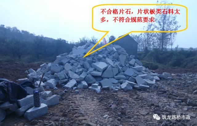 1.2 片石:厚度不小于150mm,不得采用裂纹、风化石、山皮石。片石要有平整面,棱角分明。不得采用无棱角,尺寸超小,薄片状,浑圆状石料。用作镶面的片石,表面要大致平整,边角方正,厚度不小于15cm,达不到要求的要进行加工修饰。