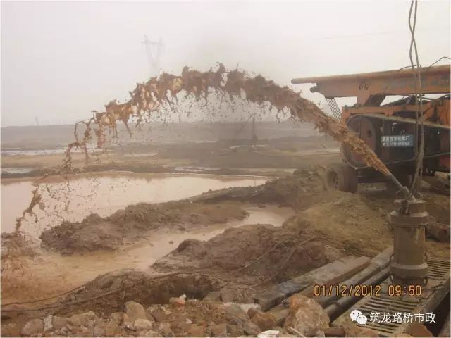 (h)清孔后泥浆比重、粘度等指标降低,’用空气吸泥机清孔,泥浆吸走后未及时补水,使孔内水位低于地下水位,清孔操作不当,供水管直接冲刷孔壁,清孔时间过久或清孔后停顿过久。