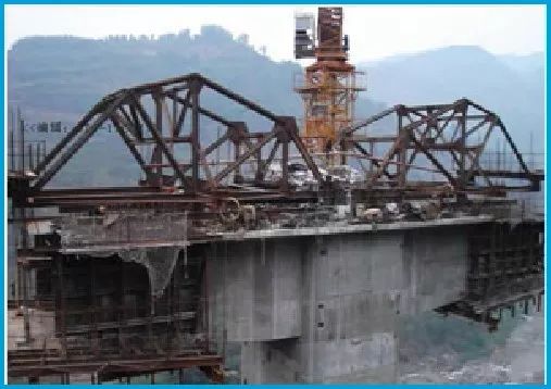 挂篮锚固悬挂在已施工梁段上,为下一节段施工作业提供空中平台。完成一个节段施工后,挂篮即可前移并固定,进行下一节段的施工,如此循环直至悬臂灌注完成。