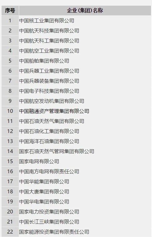 5月10日,国务院国资委网站公布最新中央企业名录,详细如下: