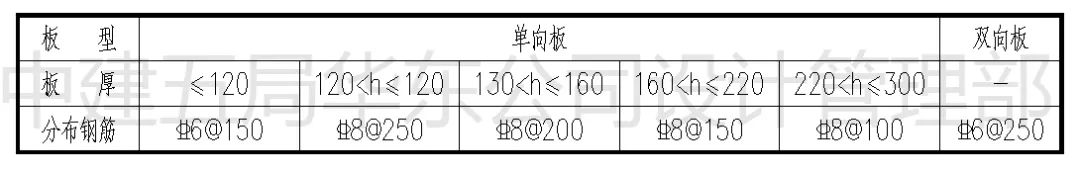(2)如当地没有特殊要求,板内分布筋可按下表配置: