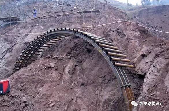 一般而言,岩石隧道挖了之后不会马上垮,而土质隧道由于预先注浆或者打了锚杆(也就是粗点的钢筋)也不会马上垮,这个时候,工人就会按照测量的指示,把一些预先做成隧道轮廓样子的钢拱架安放到指定位置,如下图:
