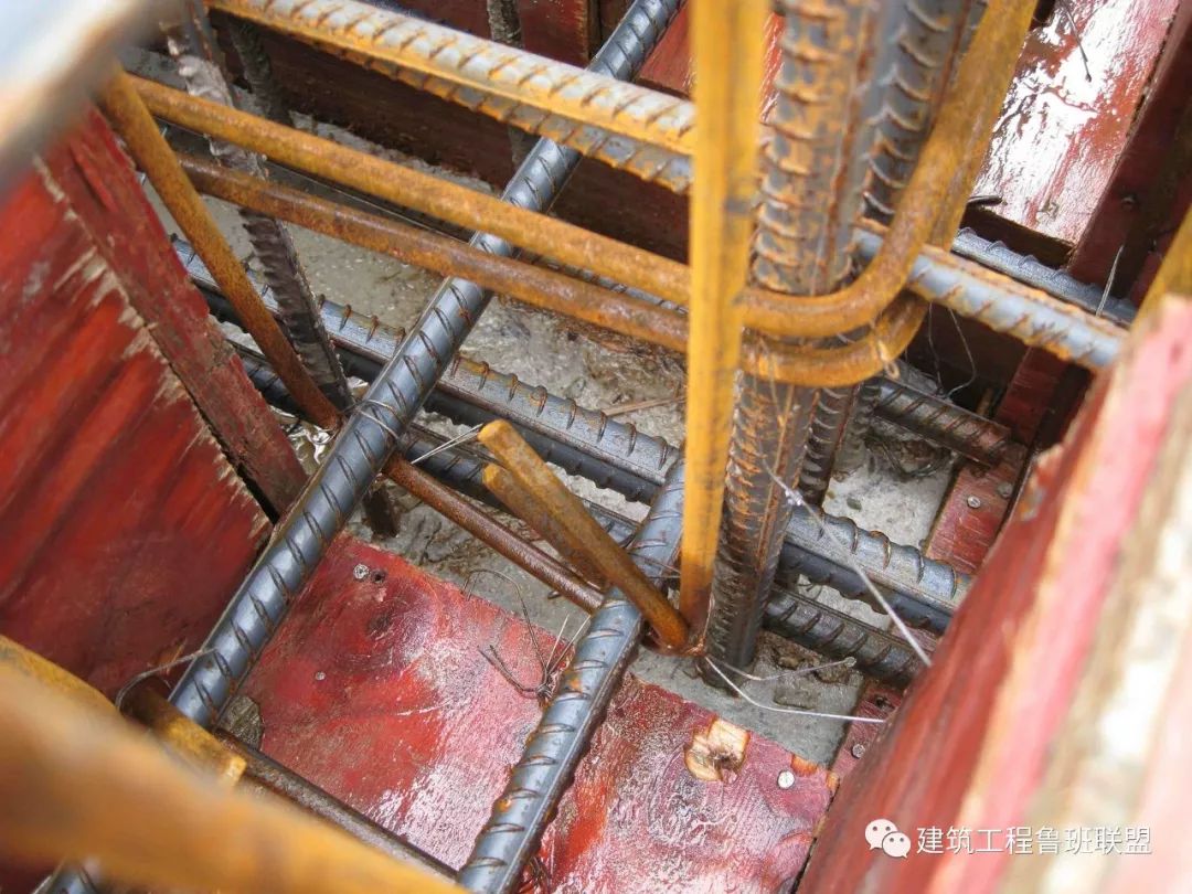 (7)梁柱节点内钢筋较密,柱筋往往被梁筋挤歪而偏位。