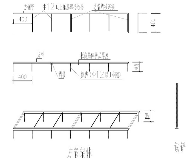 (2)方管撑脚:采用φ12或φ14的钢筋制作,最好采用圆钢。