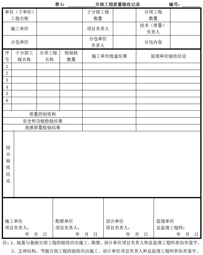 分部工程质量验收记录可按《建筑工程施工质量验收统一标准》附录G填写。