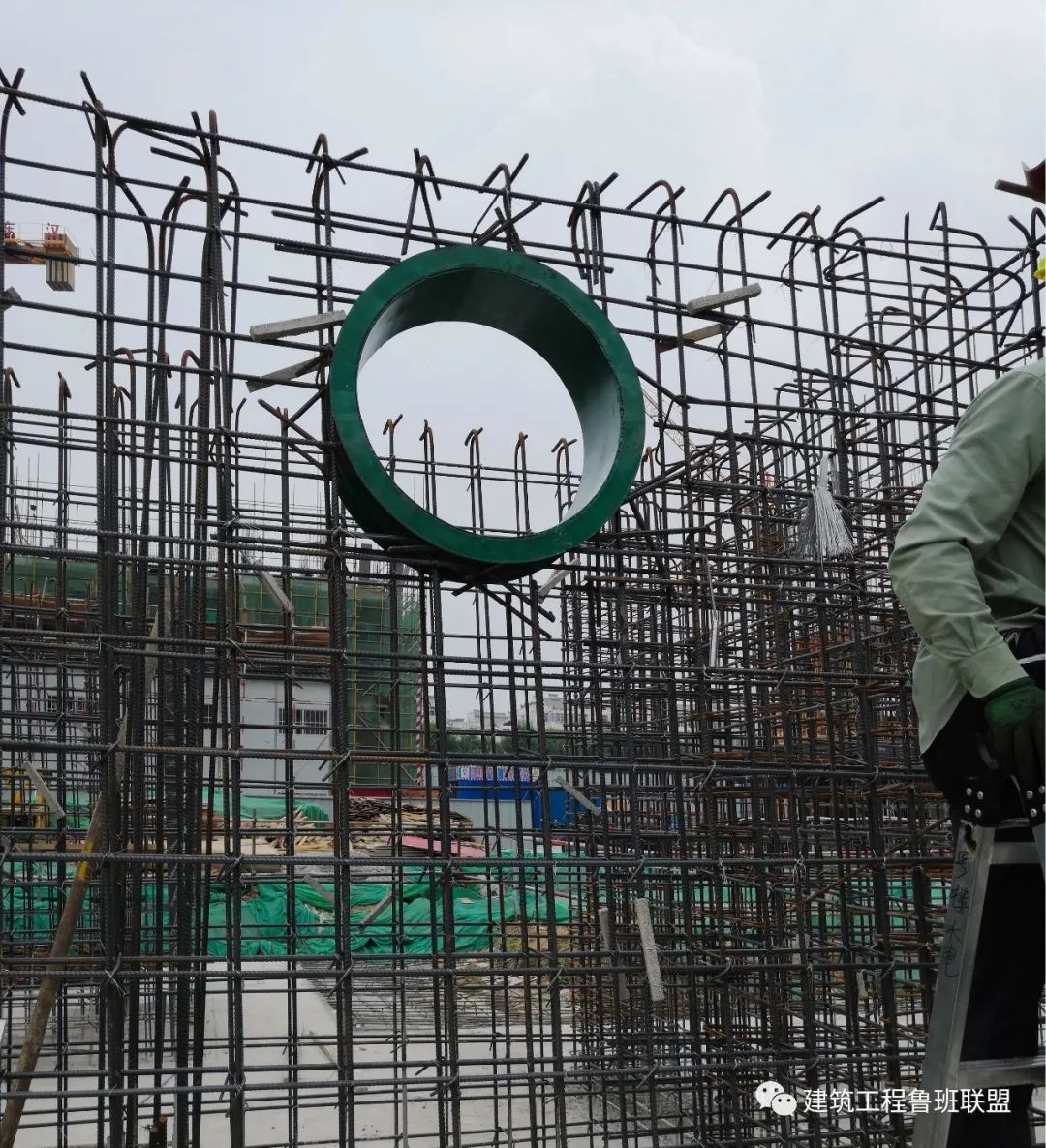 注意:套管与翼环验满焊,套管内外侧除锈,内测刷防锈漆两道,模板拆除后,外露的套管要刷防锈漆保护。