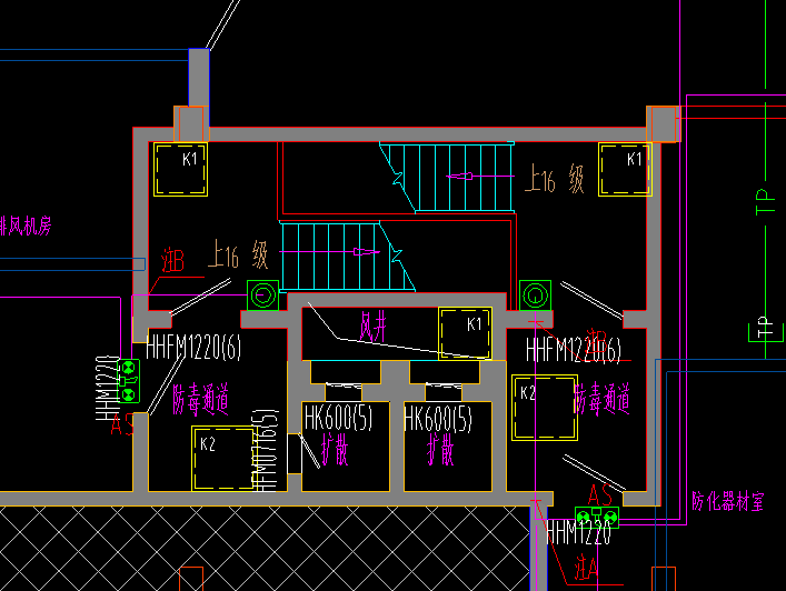 人防预留预埋涉及到战时和平时给排水、通风、电气。施工之前要要结合平时、战时图纸、结构图纸一块看,认真分析每一道外墙、临空墙、单元隔墙,仔细研究每一个战时功能房间(主要是密闭通道、滤毒室、战时机房、柴油发电站等),不要遗漏任何一个套管。下面就基于工程示例解读,以供大家参考实施。