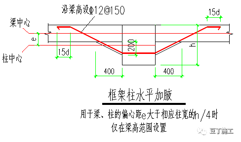 5)框架柱水平加腋大样: