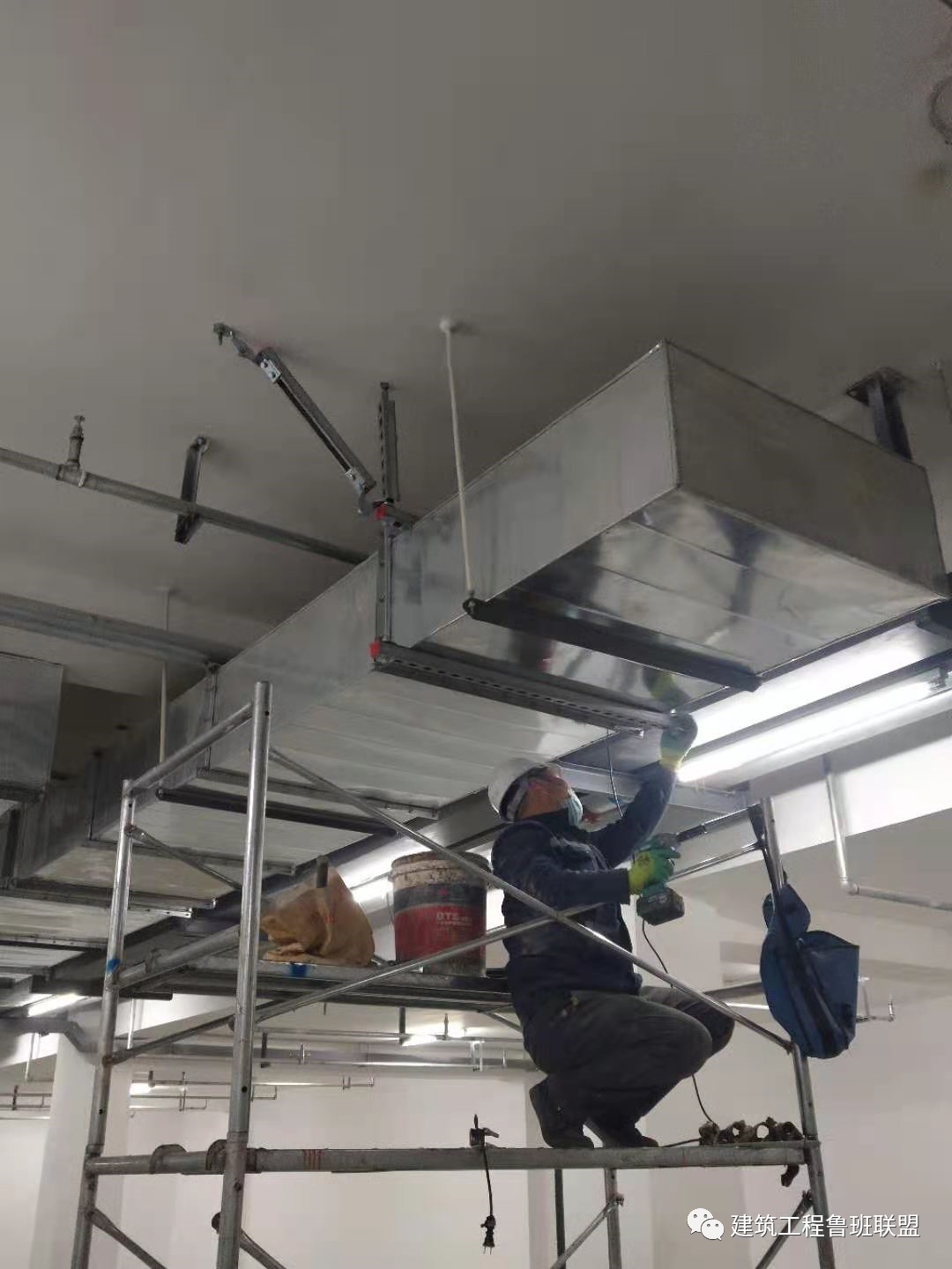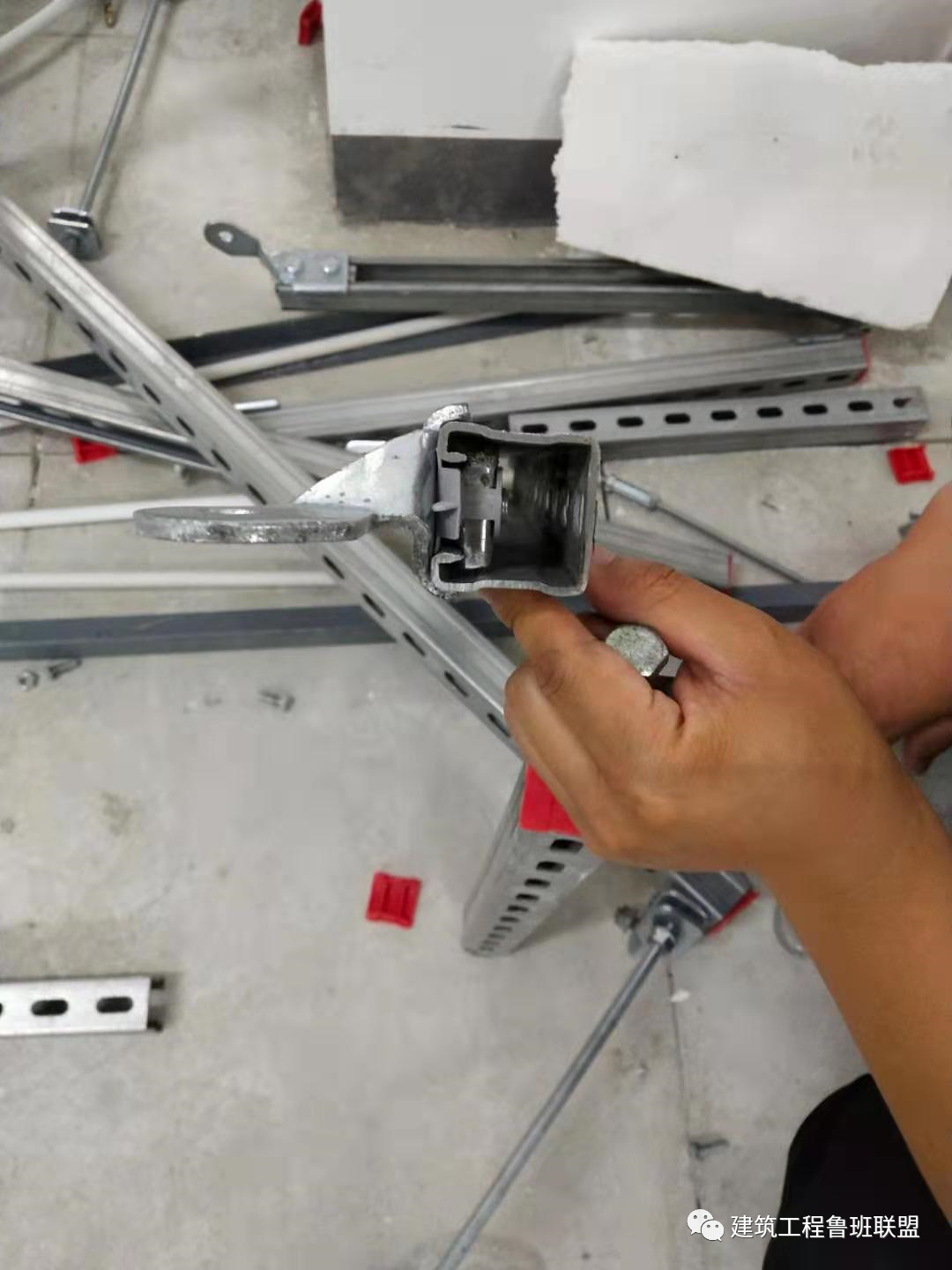 本工程为成品抗震支架,现场工人实操:成品支架就是在厂家生产好支架已经是完整的,由成品槽钢、管束、配件三种系统按照设计样式组合到一起的支撑结构,工厂批量生产;在施工现场无须焊接、打孔,部分情况(如C型钢、调节杆)需要现场简单切割。