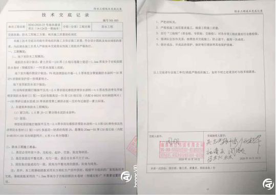 施工前,由项目技术负责人对施工管理人员及班组人员进行技术交底,交底后签字确认。