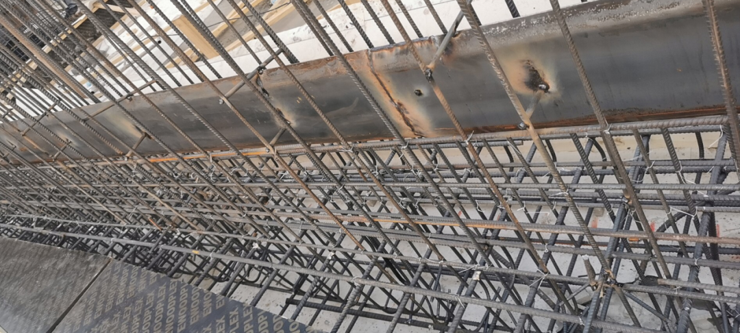 (4)钢板穿柱节点:本工程止水钢板穿柱子处,柱箍筋采用开口箍形式,并与止水钢板双面搭接焊,焊接长度为5d(5*10=50mm)。