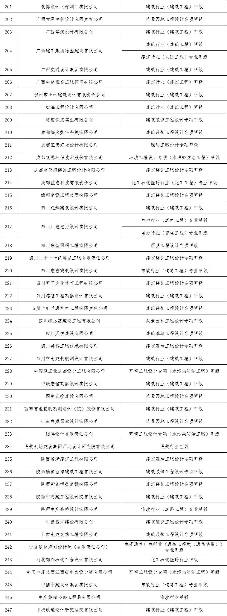 2.核准工程设计资质的单位名单