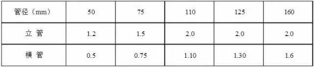 表5.2.9 排水塑料管道支吊架最大间距(单位:m)