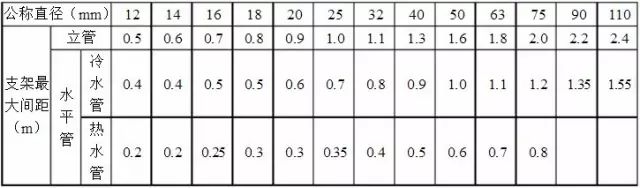 《建筑给水排水及采暖工程施工质量验收规范》上对管道支吊架间距的相关规定: