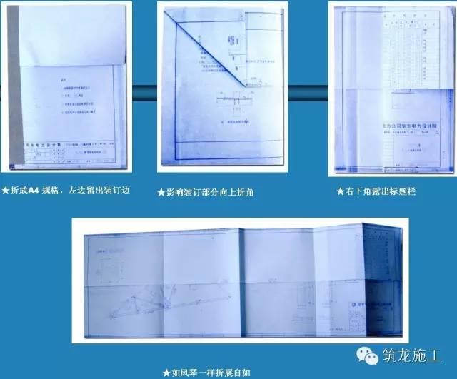 8、所有竣工图均应加盖竣工图章和设计出图专用章。竣工图的折叠方式要符合档案馆的要求(一般情况下是折成手风琴的样式,见下图1)竣工图章的基本内容应包括:“竣工图”字样、施工单位、编制人、审核人、技术负责人、编制日期、监理单位、现场监理、总监。