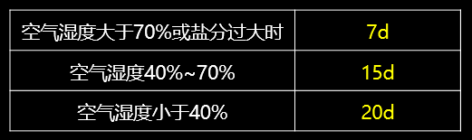 (4)穿束后至孔道灌浆完成应控制在下列时间以内,否则应对预应力筋采取锈措施:
