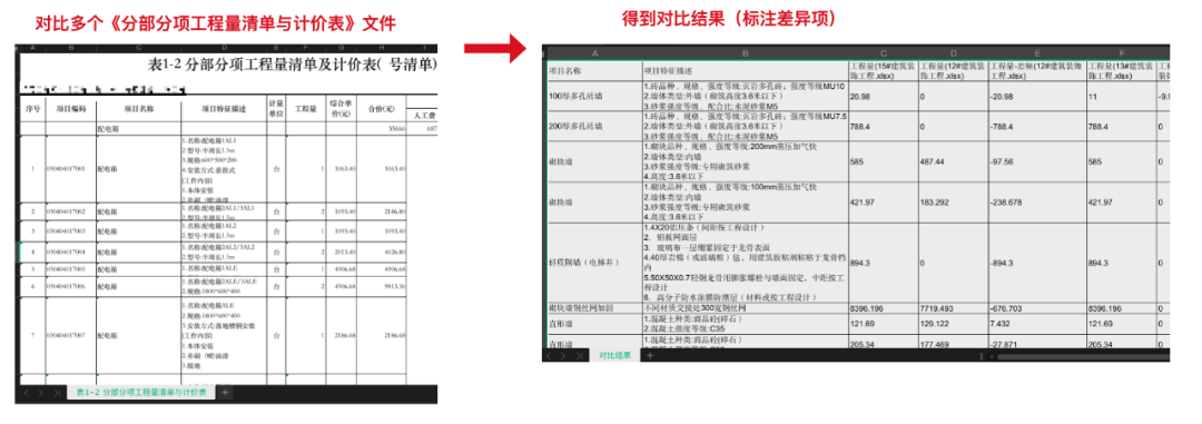 造价Excel对比工具