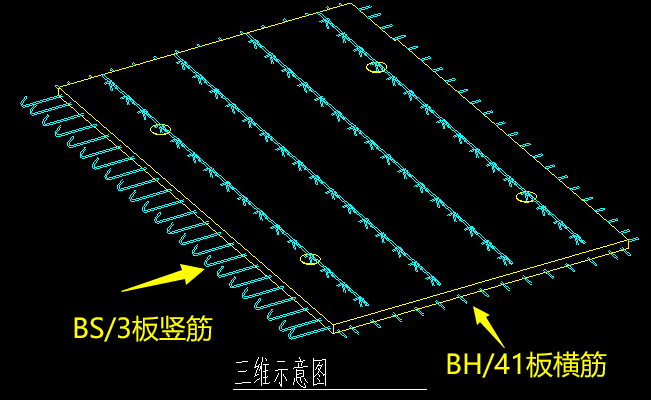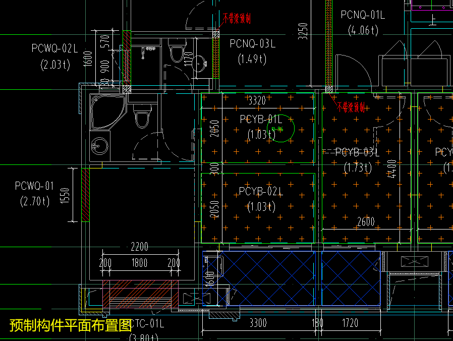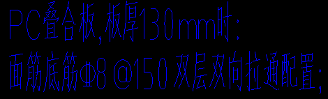 一看结构平面图。从结构平面图中的说明可以获取到黄圈中特殊标记的板为PC叠合板,整个板厚为130mm,配筋为C8@150双层双向拉通配置。PC叠合板的钢筋是怎样的,还要进一步分析预制板深化图。