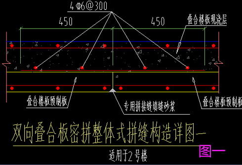 相邻预制板块之间可能是密拼(如图一所示),也可能是带一定宽度的拼缝(如图二所示),各项目的具体要求需要看“预制构件结构设计总说明”或单独的预制构件节点详图。