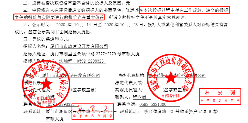 重新公示的信息显示,中标候选人在本次投标过程中存在工作疏忽,递交的投标文件的报价与实际要进行的报价存在重大偏差,这才导致了中标价比招标控制价相差十万八千里的乌龙事件。