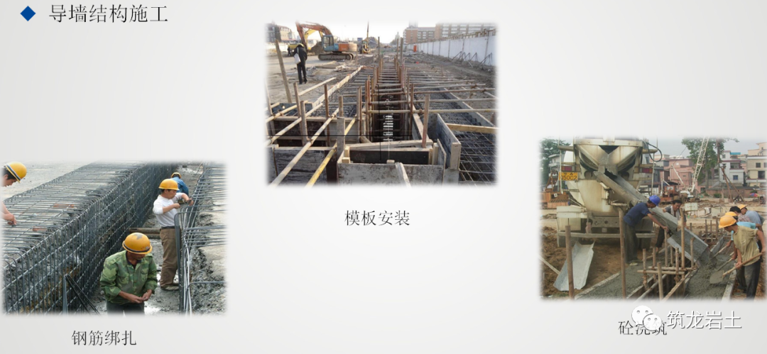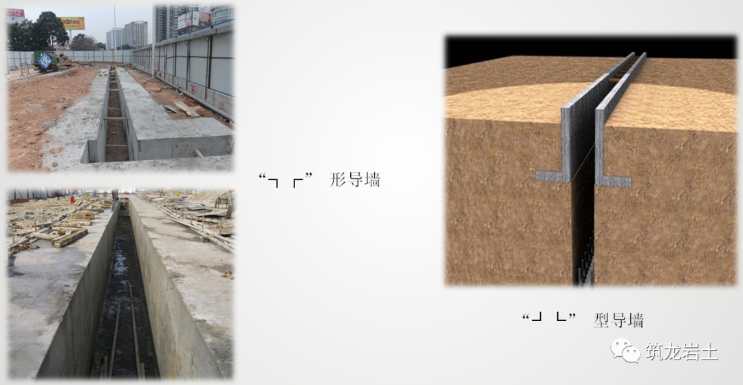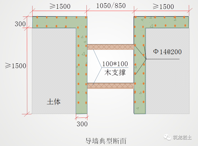 导墙是保证地下连续墙位置准确和成槽质量的关键,在施工期间,导墙经常承受钢筋笼、浇注砼用的导管、机械设备等静、动荷载的作用,因而必须认真设计和施工,才能进行地下连续墙的正式施工。导墙一般采用现浇钢筋混凝土结构,也有钢制的或预制钢筋混凝土的装配式结构。根据不同土质特点进行设计施工。