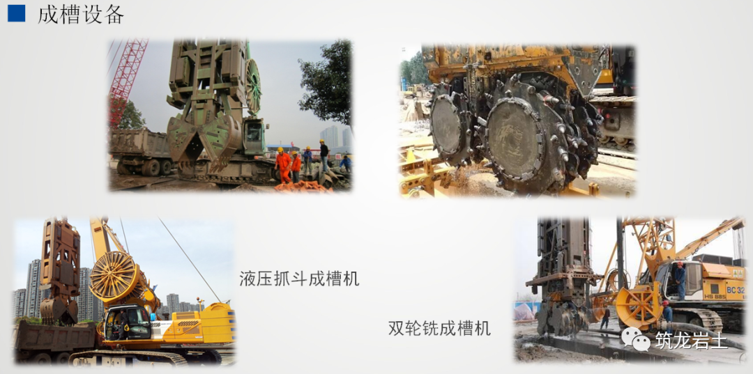 换用铣槽机成槽时首先用较快的铣削速度将抓斗已经挖好的孔重新再铣一遍,修复抓斗成槽槽段;遇到岩层后降低铣削速度,完成岩层的成槽。双轮铣槽机工作原理为反向循环原理。挖掘时两个铣轮连续 的切削下面的泥土和岩石然后把它们卷上来并破碎成小块,再在槽中与稳定的泥浆混合后将它们 吸进泵里面。装在真空盒上面的离心泵,将这些含有碎块的泥浆泵进一个循环设备,在那里通过 一个振动系统 ,将泥土和岩石碎块自泥浆中分离,处理后干净的泥浆重新抽回槽中循环使用。