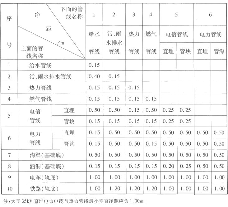 1. 各种工程管线不应在垂直方向重叠直埋敷设