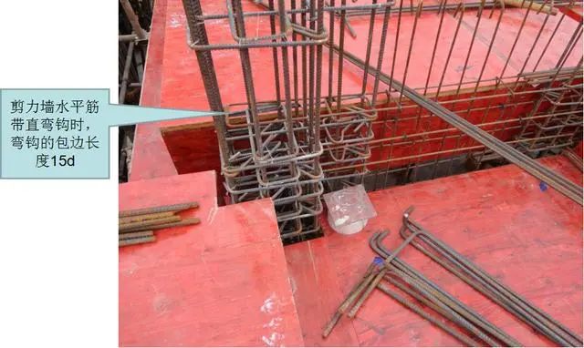 2)剪力墙竖向钢筋封顶带直弯钩时,弯钩外包长度。
