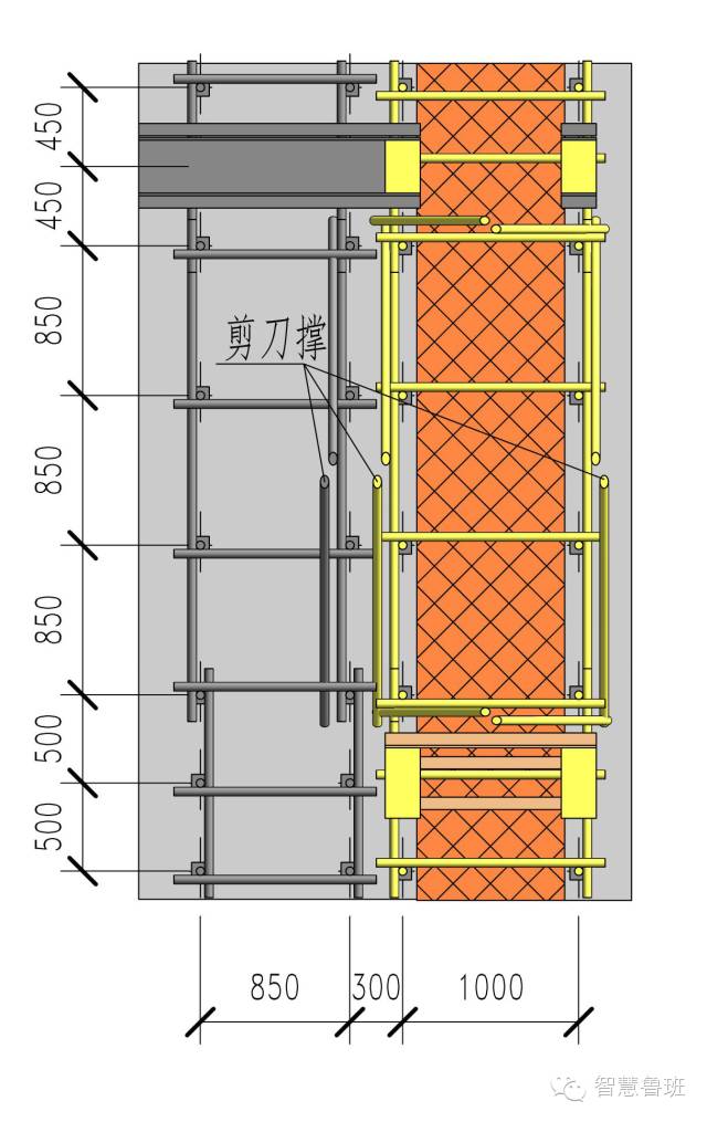 如果你还没明白,下面这个图去掉了次龙骨方木和模板,应该更直观: