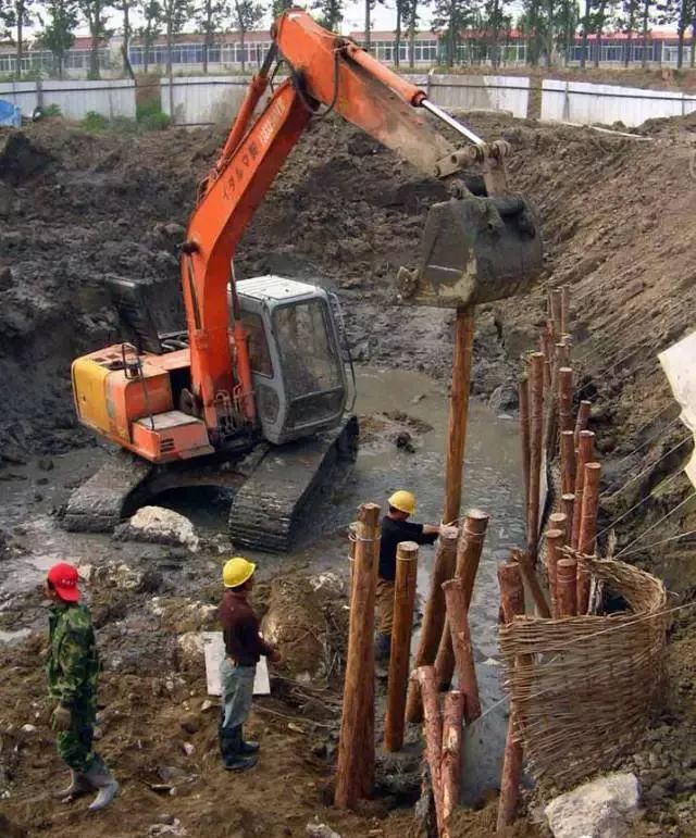 施工现场,基坑打设柱桩