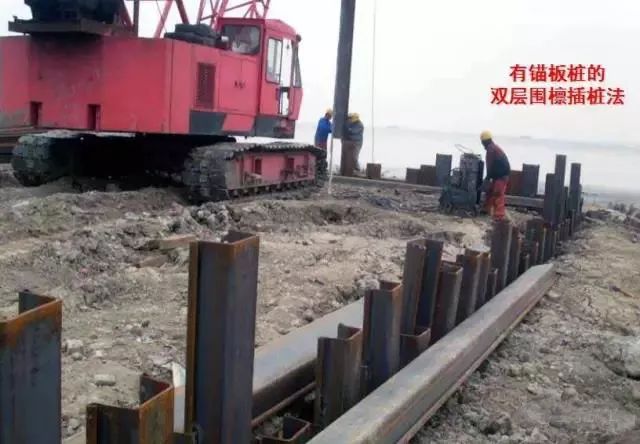 2)有锚板桩的双层围檩插桩法