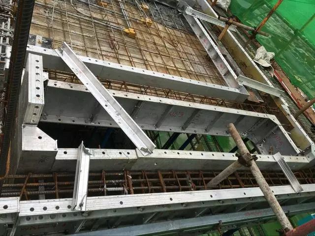 由于新铝模首次使用会与混凝土产生化学反应,形成氧化膜,会造成拆模困难及气泡等问题,因此铝模施工前,因此在首三层使用铝模专配脱模剂。保证了对铝模的保护及拆模效果,在后续施工中可以使用普通专用铝模水性脱模剂和油性脱模剂,节约成本。