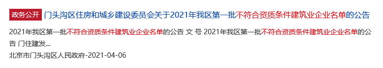 整改期间暂停为其开具出京承揽工程证明;