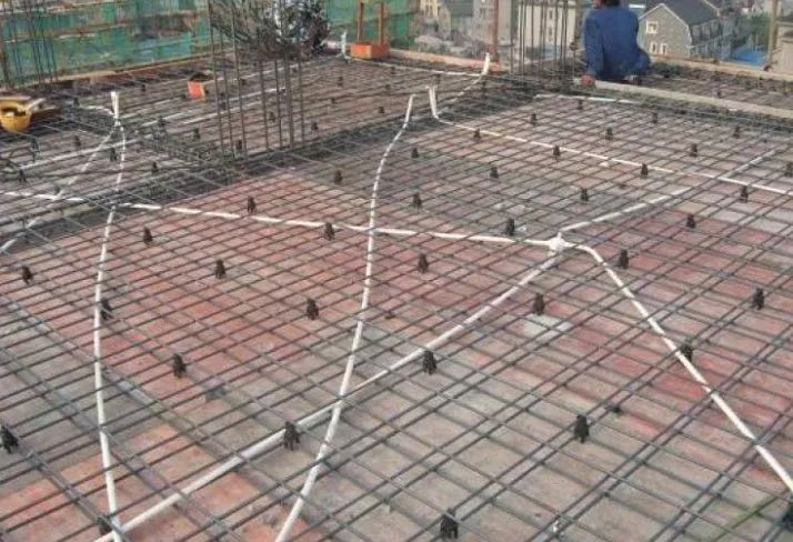 4、板钢筋绑扎时应防止水电管线将钢筋抬起或压下 。