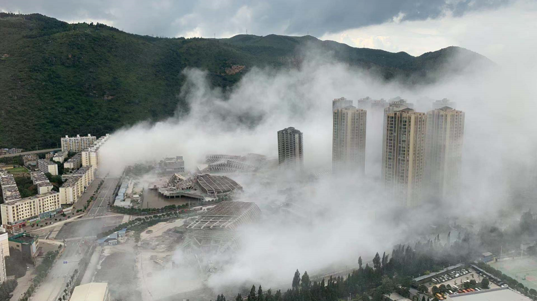8月27日下午15点30分,昆明著名烂尾楼丽阳星城二期A1\A3\A4 地块成功实施爆破拆除,随着一连串巨大的爆炸声,45秒内,15栋烂尾楼依次倒下。一次性拆除15栋高层建筑,在云南尚属首次,在全国也属罕见。