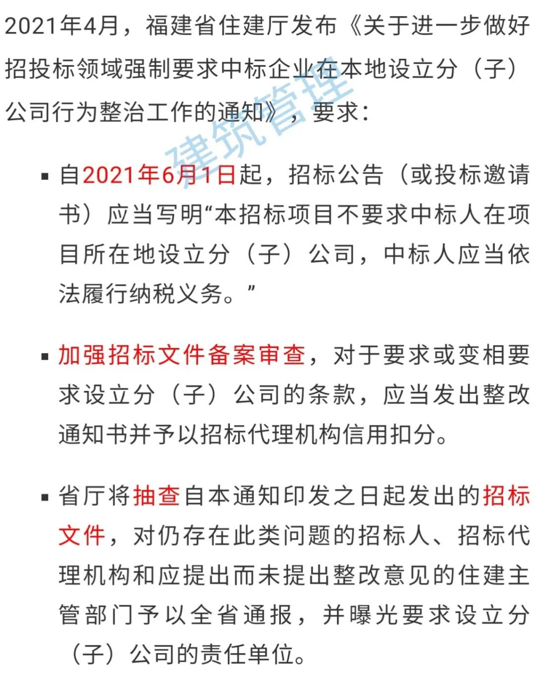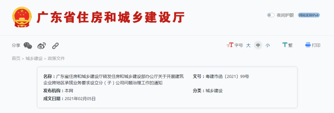 (此前报道:住建部发文:不得要求外省建企设立分(子)公司!严查地方保护、限制/排斥外省建企承揽业务等行为!)