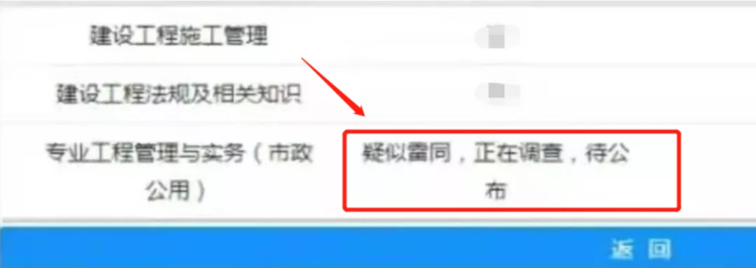 目前二建考试成绩正在陆续公布,在某省份考生二建成绩查询界面有显示“疑似雷同,正在调查”,是否与泄题相关暂不明确,但能确定的是工作人员正在针对“作弊行为”进行调查。