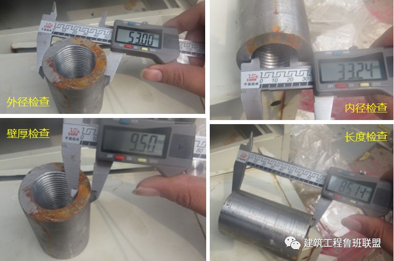 3、钢筋丝头的加工长度一般比公正差(套筒长度的一半)多两个丝(完整的丝扣圈数)。