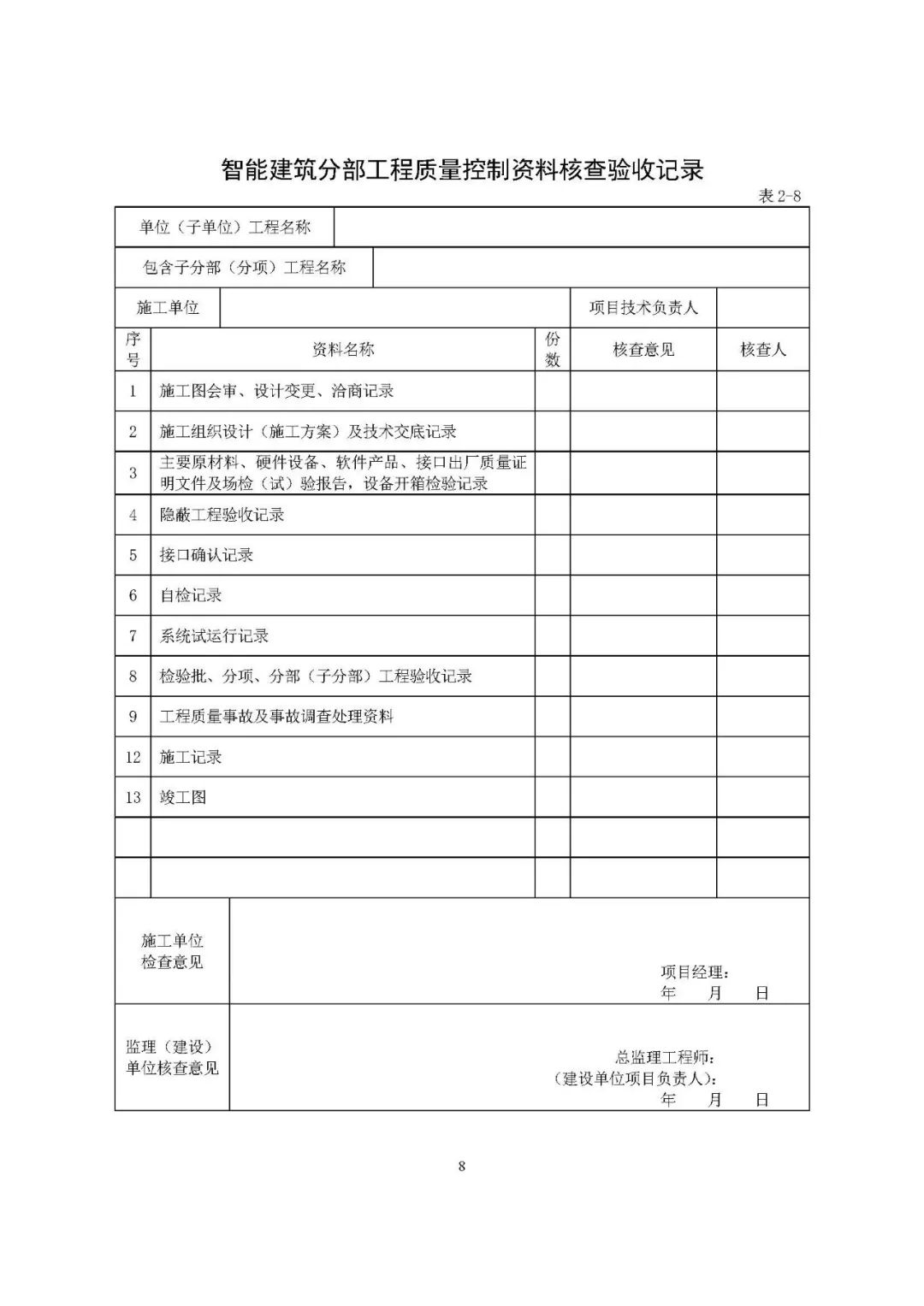 分部工程验收中要求的“质量控制资料”和“安全和功能检验资料”都包括什么?以下表格示例,以供参考。