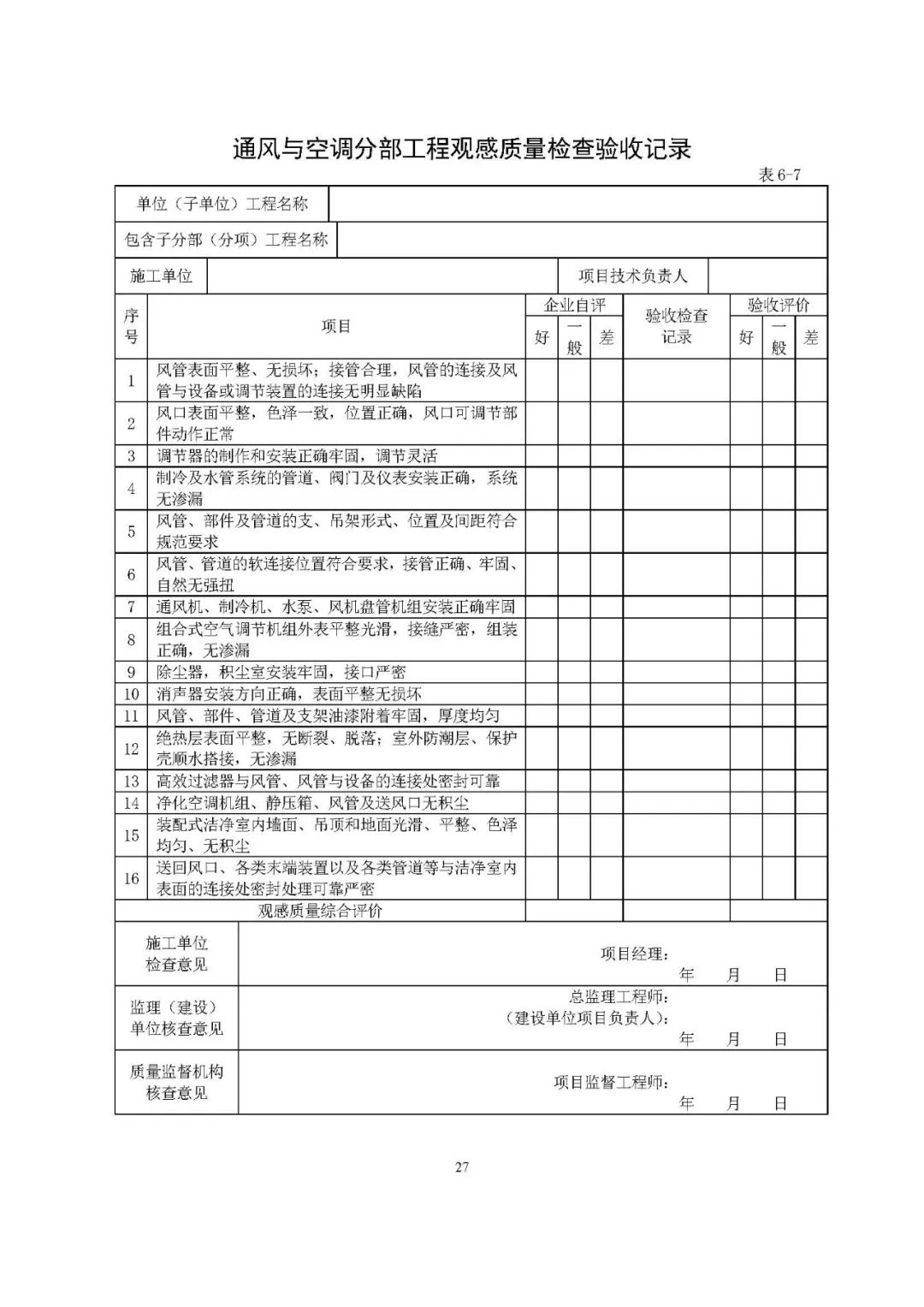 观感质量验收表