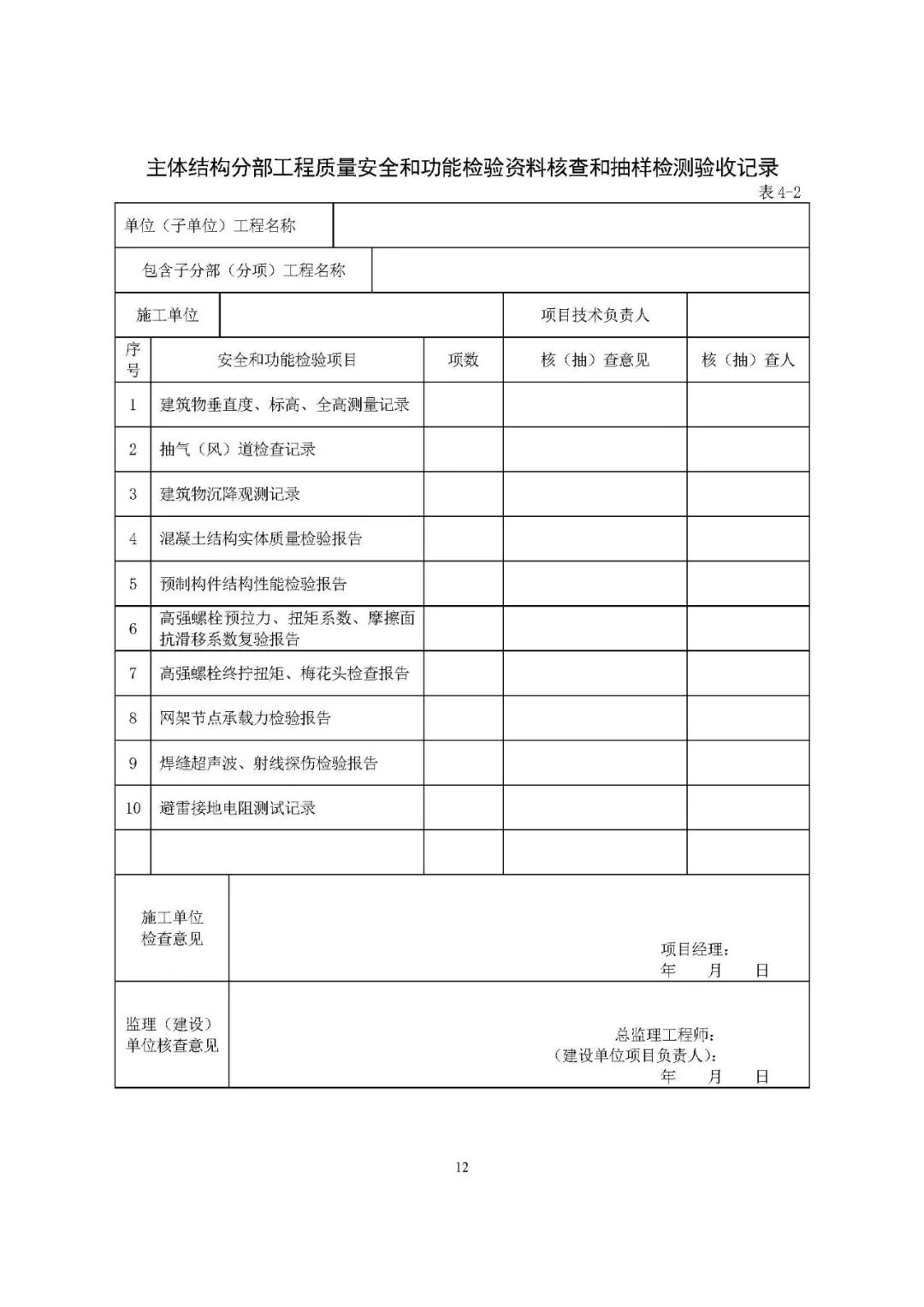 安全和功能检验资料核查表