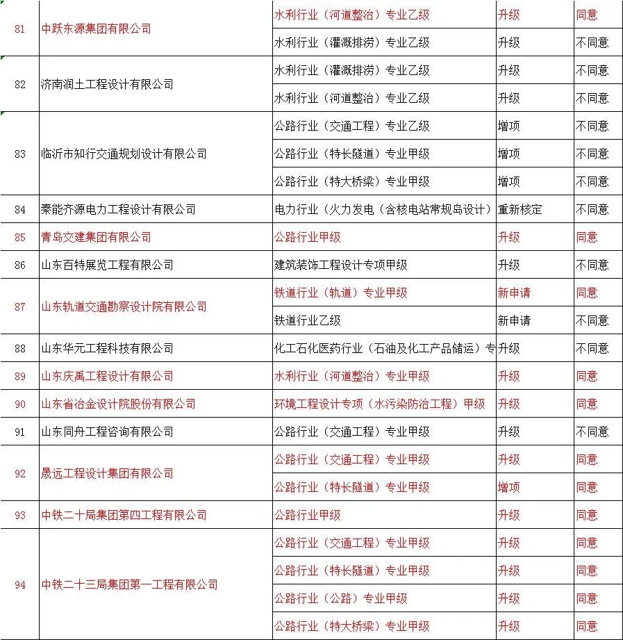 | 59 | 青岛交建集团有限公司 | 公路工程施工总承包特级 | 升级 | 同意 |