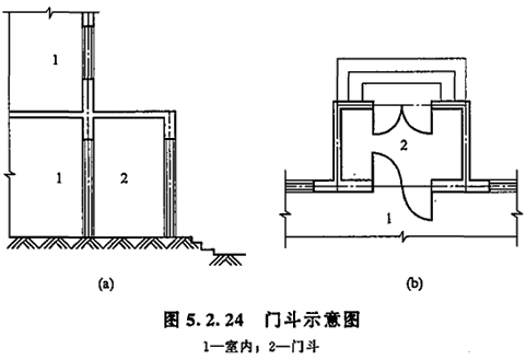 15、门斗应按其围护结构外围水平面积计算建筑面积,且结构层高在2.20m及以上的,应计算全面积;结构层高在2.20m以下的,应计算1/2面积。
