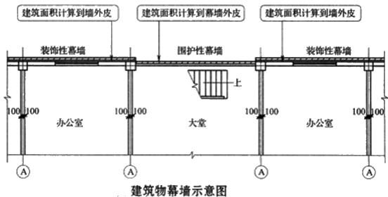 幕墙以其在建筑物中所起的作用和功能来区分,直接作为外墙起围护作用的幕墙,按其外边线计算建筑面积;设置在建筑物墙体外起装饰作用的幕墙,不计算建筑面积。