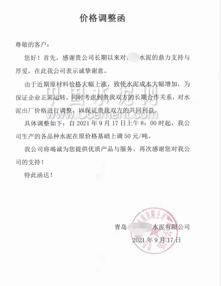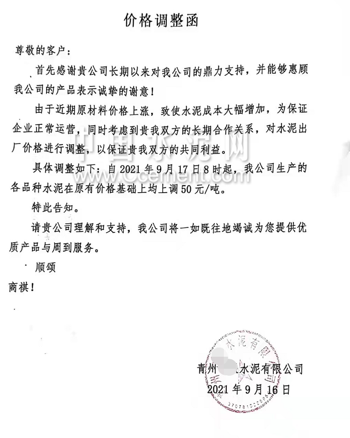 17日起省内一些主要厂家陆续通知上调各品种水泥价格40-50元/吨,价格将陆续落实到位。整体来看,金九银十传统旺季,需求向好,加之限电及成本压力等多重因素影响,本次企业对推涨价格较为坚挺。