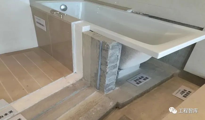 浴缸基础底部、侧墙做JS防水,能有效避免浴室渗漏。