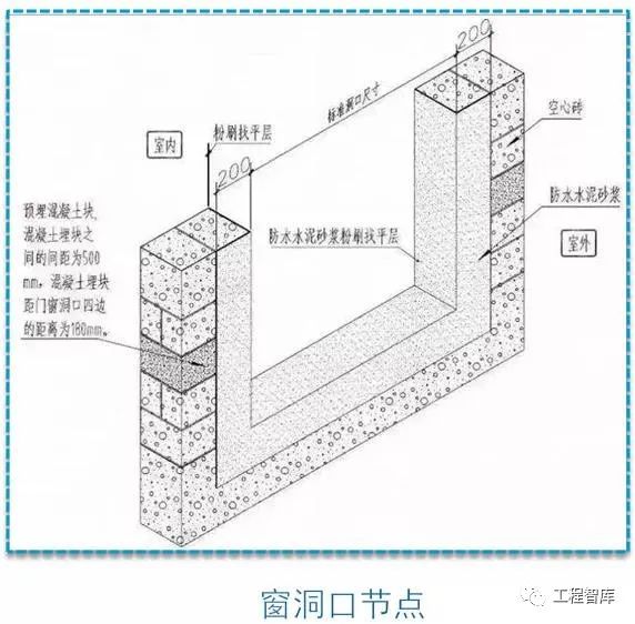 门窗边框四周的外墙面200mm范围内,用防水砂浆抹面并增涂二道防水涂料以减少雨水渗漏的机会;