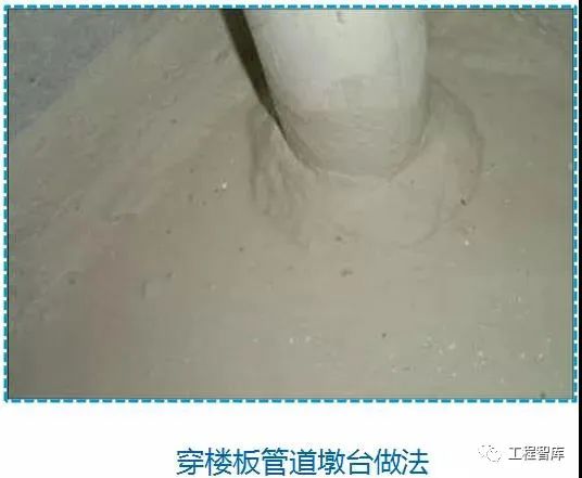找平层施工:找平层宜采用防水砂浆,沿墙角处应做不小于r=50mm圆弧,所有穿楼板管道根处应做不小r=50mm、高50mm的台墩。